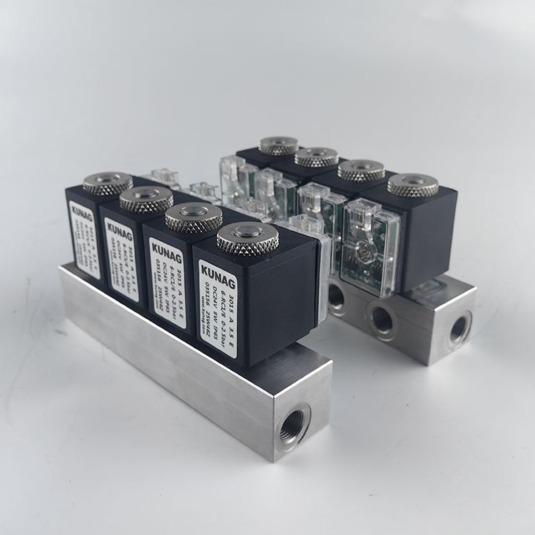 1-in-4-out solenoid valve, four-way integrated solenoid valve, compact valve group, multi-channel control solenoid valve, stainless steel integrated solenoid valve, corrosion-resistant four-way solenoid valve, low-power combination solenoid valve, high flow valve group, high-strength solenoid valve group, medical equipment multi-channel fluid control valve, environmental protection equipment sampling valve group, analytical instrument four-way distribution valve, experimental device flushing valve, small automation equipment integrated solenoid valve, compact solenoid valve supplier, four-way solenoid valve price, integrated valve group manufacturer, OEM multi-channel solenoid valve customization, Kunag 1-in-4-out solenoid valve